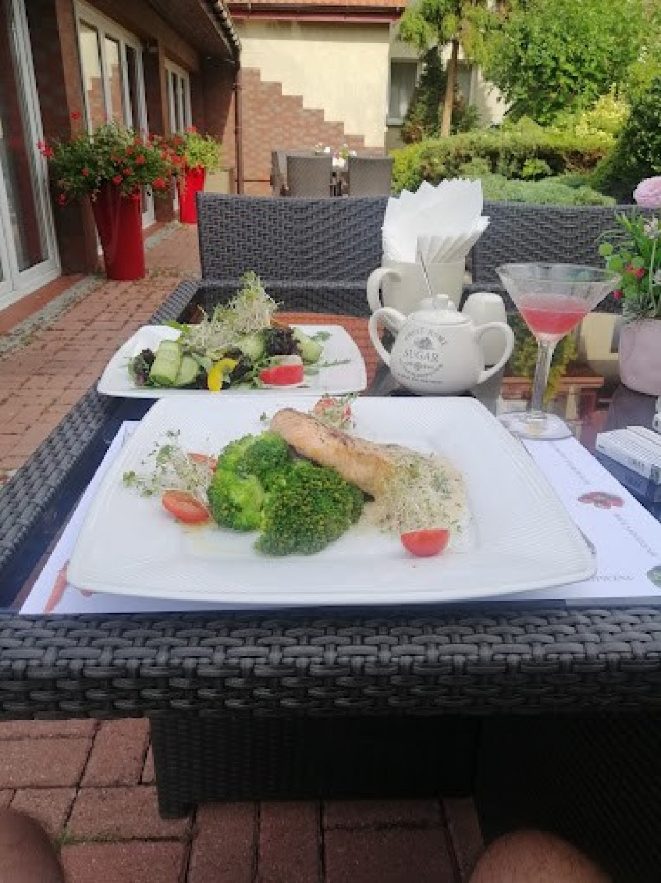 Restauracja Ogrodowa urządzona jest w angielskim, eleganckim stylu. Z okien można podziwiać piękny ogród. Wszystkie potrawy przygotowywane są z regionalnych, świeżych produktów. Popisowymi daniami są: zupa rybna z bulionem gotowanym na wódce oraz grillowana pierś z kurczaka z warzywnym spaghetti.